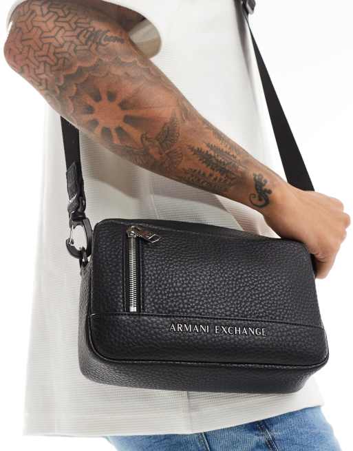 Armani Exchange logo faux pebble leather crossbody bag in black