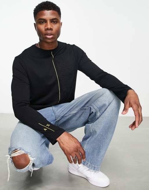 Armani Exchange long sleeve top with debossed logo in black