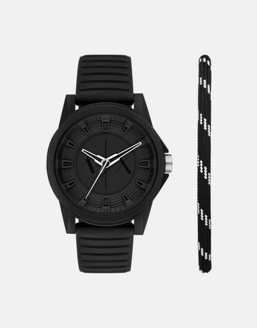 Armani Exchange Three-hand black silicone watch and bracelet set in black