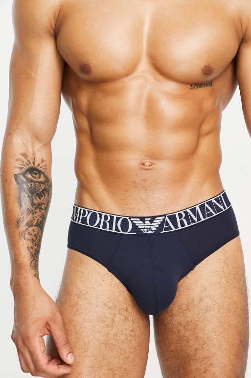 Emporio Armani Bodywear 2 pack briefs with large contrast logo in navy/ blue