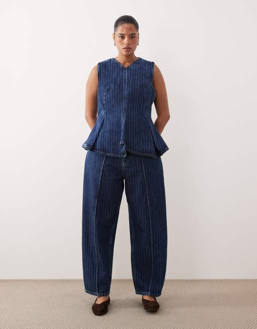 ARRANGE Curve Clover front seam detail jean co-ord in washed blue stripe