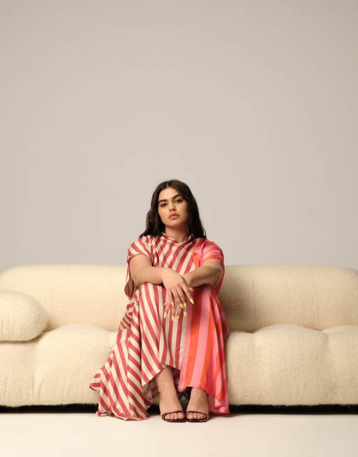 ARRANGE Curve cowl neck maxi dress with asymmetric hem in colourblock stripe