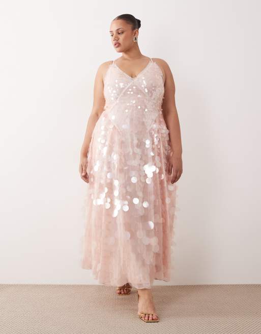 ARRANGE Curve embellished sequin cami midi dress with full skirt in soft pink