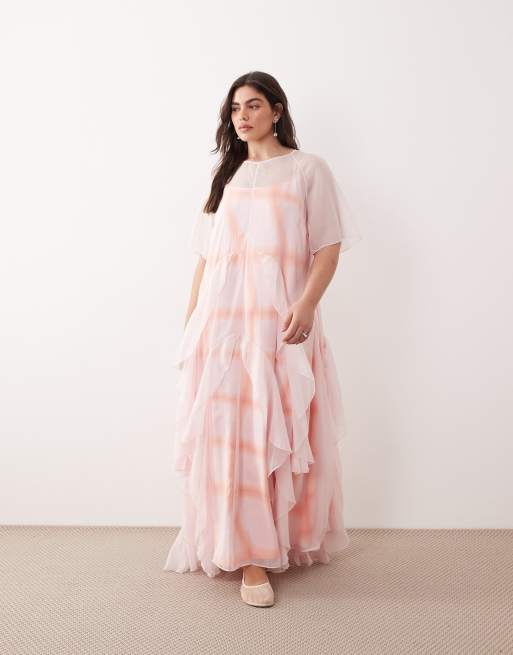 ARRANGE Curve layered ruffle down tiered maxi dress in light pink