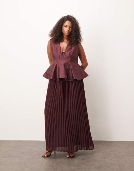 ARRANGE Curve structured waisted maxi dress with contrast pleated skirt in plum