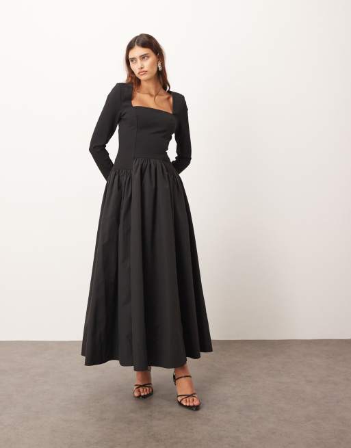 ARRANGE hybrid square neck maxi dress with full skirt in black