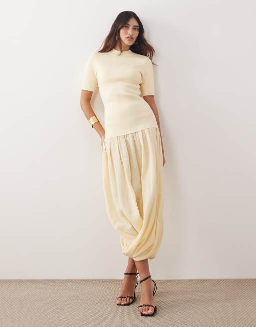 ARRANGE knit short sleeve hybrid midi dress in buttermilk