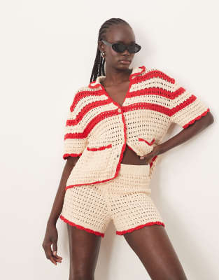 ARRANGE knitted contrast stripe short co-ord in cream and red