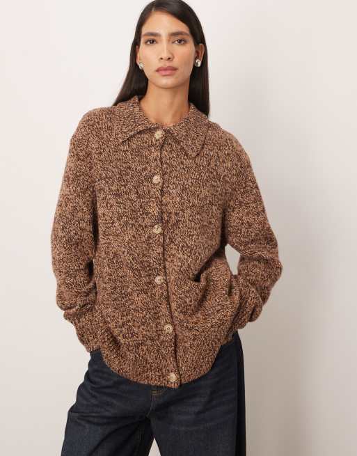 ARRANGE marl knit merino rich boyfriend cardigan in light chocolate