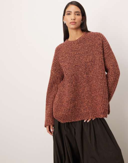 ARRANGE neppy knit merino rich curved hem jumper in red