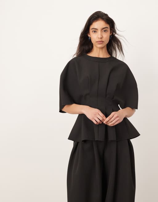 ARRANGE pleat waist short sleeve top co-ord in black
