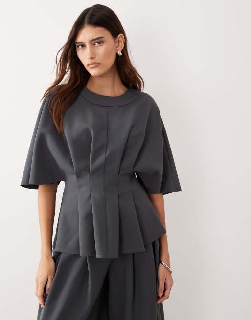 ARRANGE pleat waist short sleeve top co-ord in charcoal