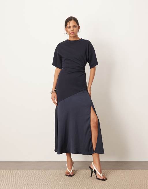 ARRANGE premium jersey and satin hybrid maxi dress in navy