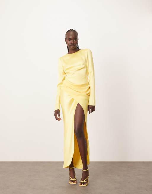 ARRANGE sleek satin drape maxi dress with open back in lemon
