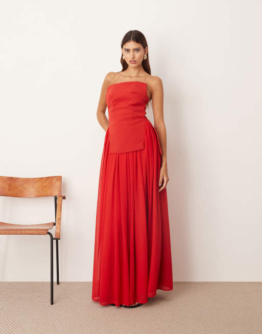 ARRANGE structured bandeau maxi dress with voluminous skirt in red