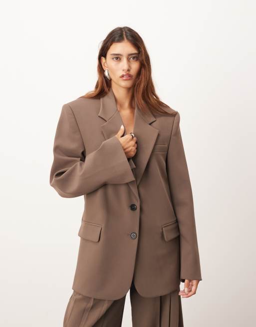 ARRANGE wool oversized single breasted blazer co-ord in chocolate