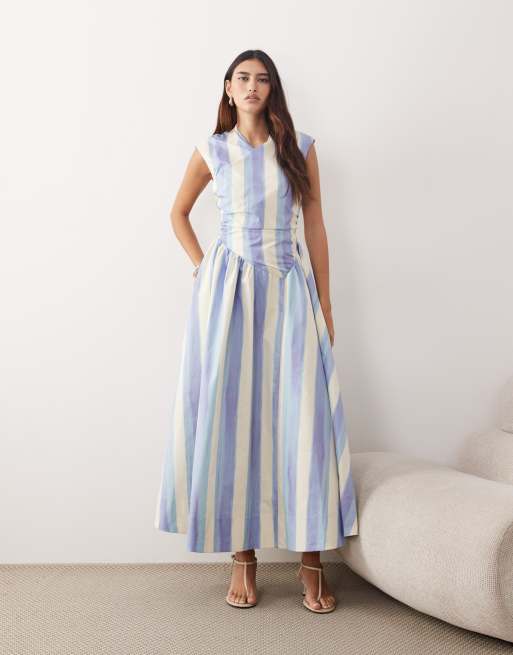 ARRANGE wrap drop waist maxi dress in blue stripe