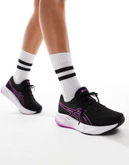 Asics Gel-Pulse 15 neutral running trainers in black and hot pink