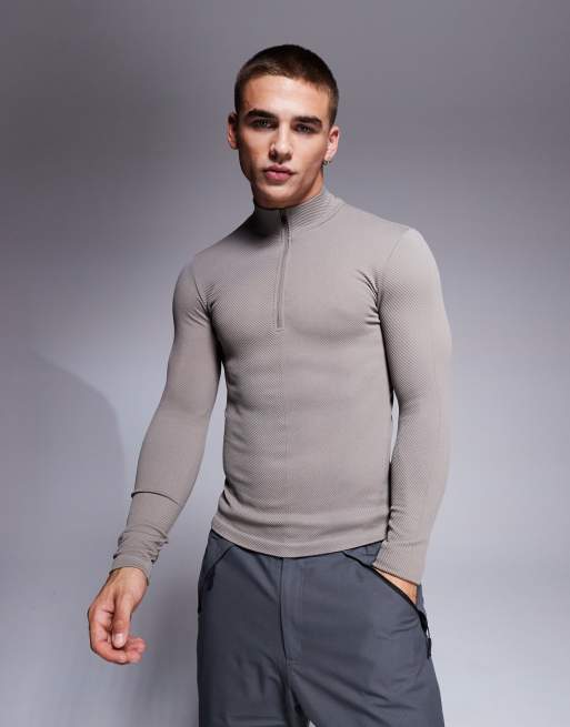 4505 Ski seamless thermal base layer 1/4 zip top in clay