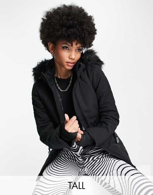 4505 Tall ski belted jacket with faux fur hood