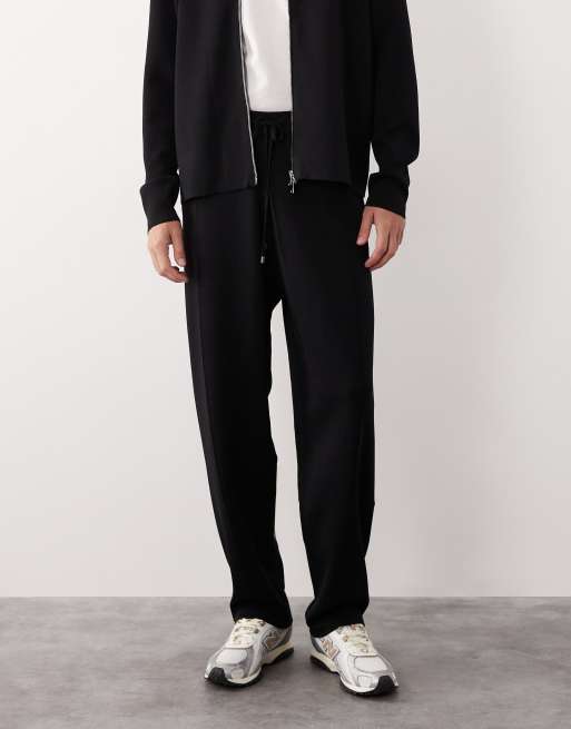 ASOS COLLECTIVE relaxed knitted zip through cardigan and tapered jogger co-ord in black