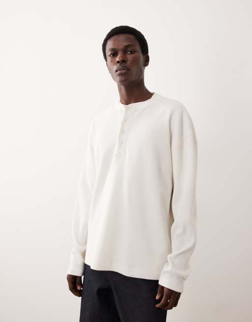 ASOS COLLECTIVE super heavyweight oversized boxy long sleeve waffle henley t-shirt in cream