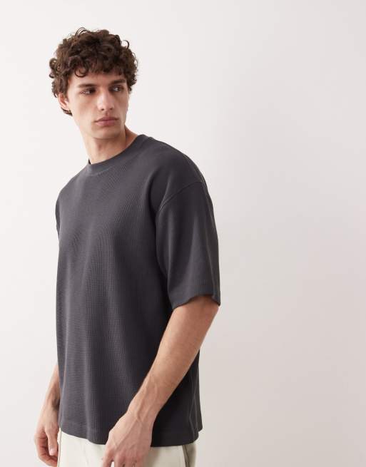 ASOS COLLECTIVE super heavyweight oversized waffle texture t-shirt in charcoal
