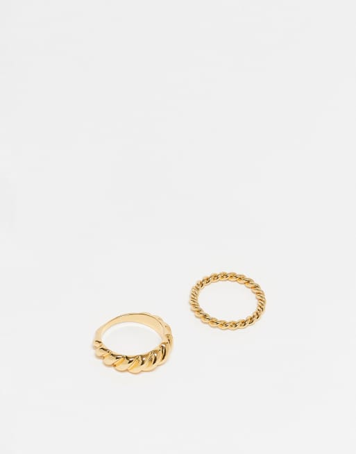 ASOS DESIGN Curve 14k gold plated pack of 2 textured rings