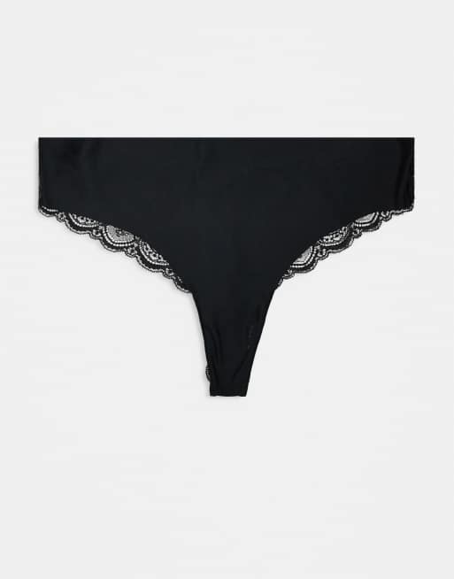 ASOS DESIGN Curve 3 pack no vpl & lace thong in black