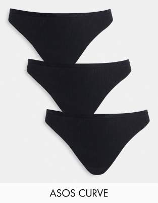 ASOS DESIGN Curve 3 pack ribbed thong in black