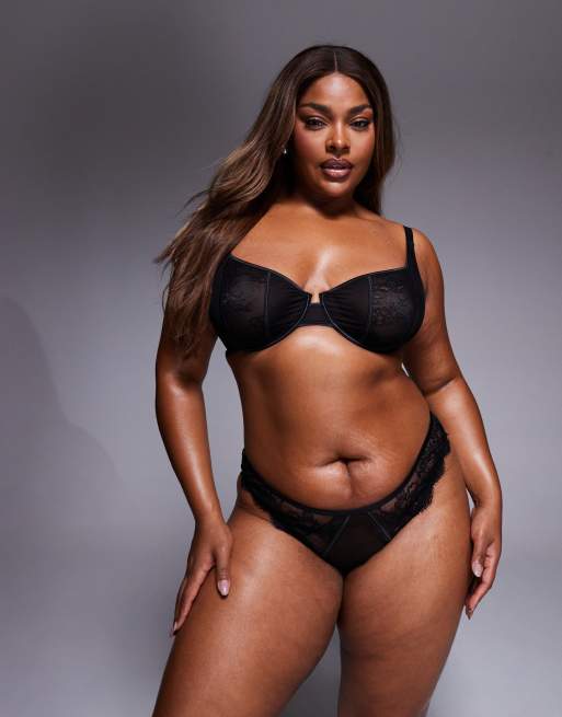 ASOS DESIGN Curve Amber lace & mesh underwired bra in black - BLACK