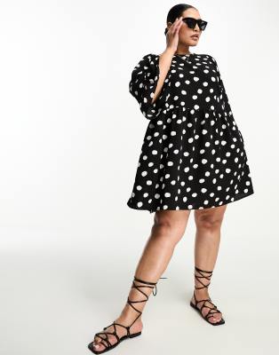 ASOS DESIGN Curve batwing sleeve smock mini dress in mono spot