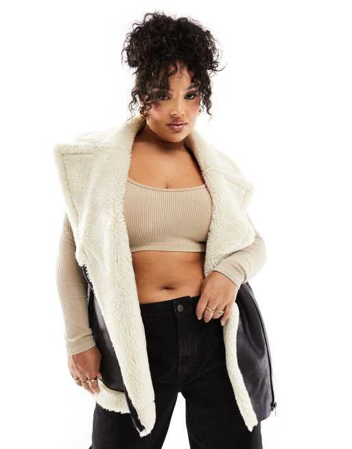 ASOS DESIGN Curve borg faux fur gilet in black with contrast borg detail