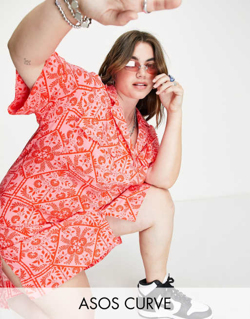ASOS DESIGN Curve bowling shirt dress in bright bandana print