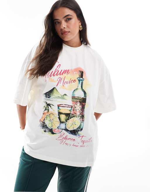 ASOS DESIGN Curve boyfriend fit t-shirt with tequila drink tulum graphic in cream