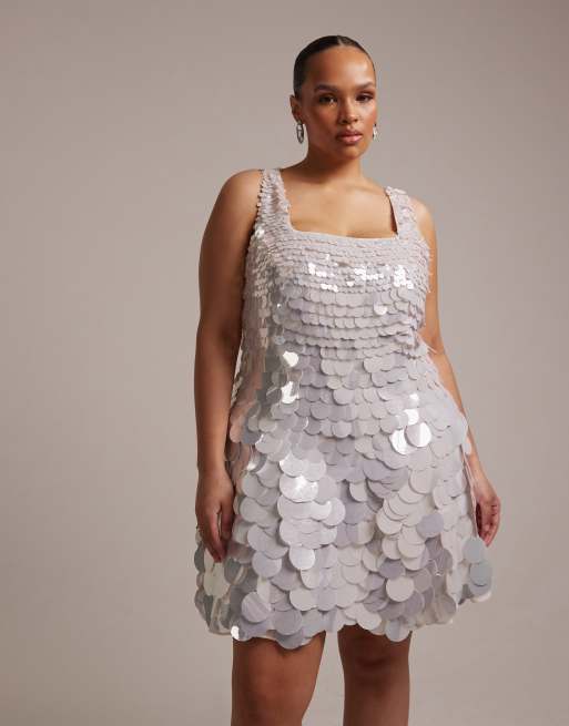 ASOS DESIGN Curve bridal large disc sequin square neck mini dress