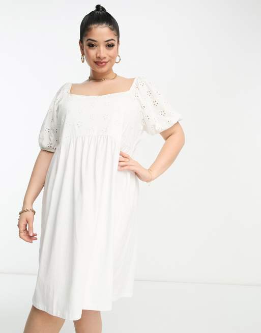 ASOS DESIGN Curve broderie mini smock dress with curve seam in white