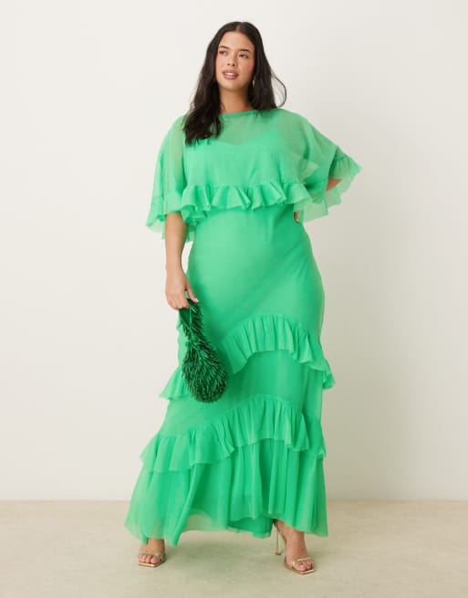 ASOS DESIGN Curve cape overlay ruffle bias maxi dress in bright gren