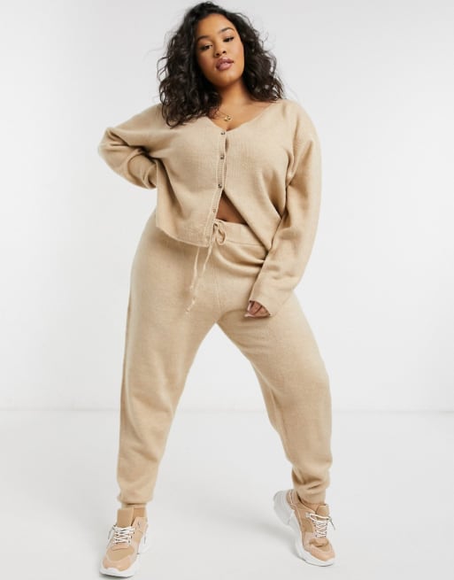 ASOS DESIGN Curve cardigan and jogger co-ord in camel