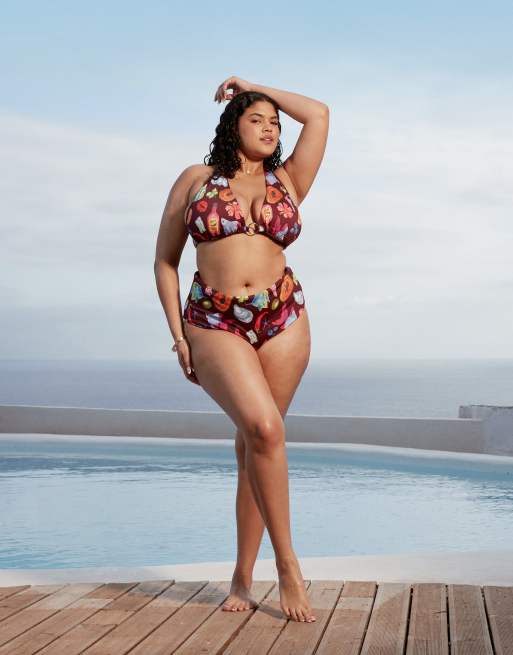 ASOS DESIGN Curve Celeste ring detail bikini in vacation print