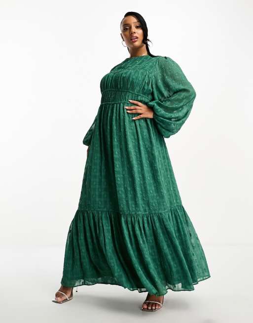 ASOS DESIGN Curve channel waist maxi dress in dark green dobby