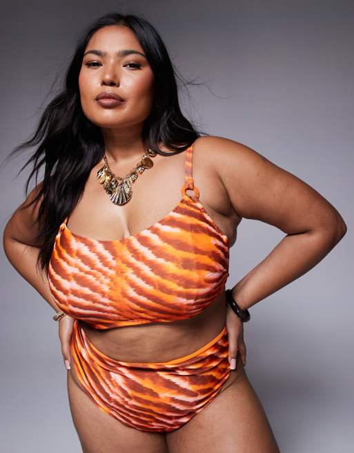 ASOS DESIGN Curve Charlie bikini in orange animal print