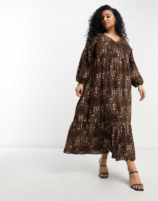 ASOS DESIGN Curve chuck on smock midi dress in animal print