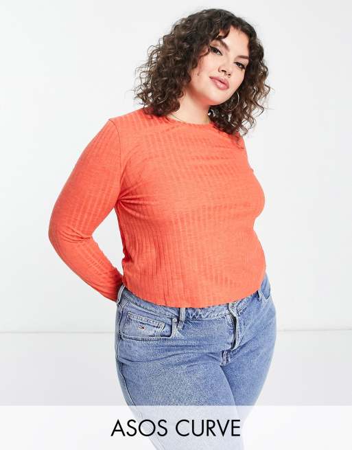 ASOS DESIGN Curve chunky rib long sleeve top in tomato marl