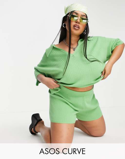 ASOS DESIGN Curve co-ord knitted shorts in green