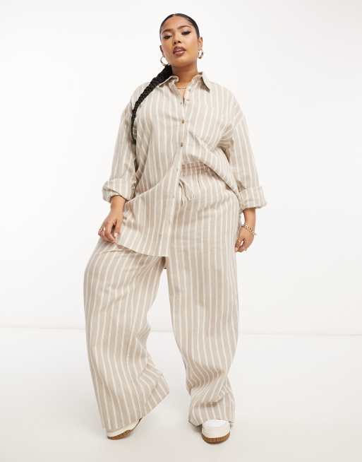 ASOS DESIGN Curve co-ord pull on trouser with linen in mixed stripe