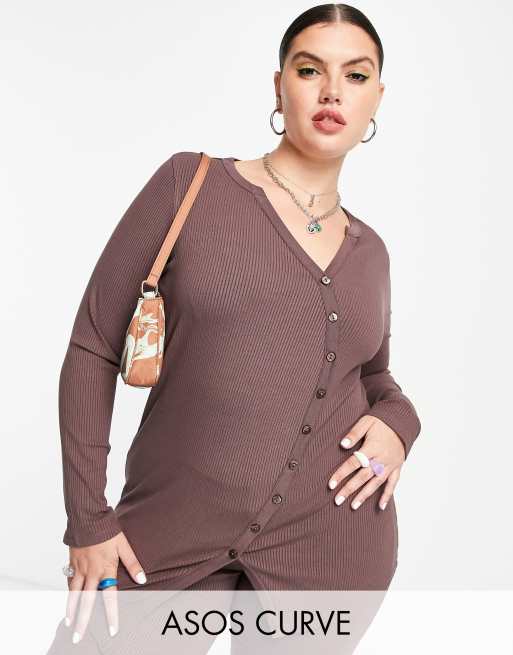 ASOS DESIGN Curve co-ord ribbed asymmetric longline cardigan