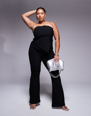 ASOS DESIGN Curve co-ord ribbed flare trousers in black