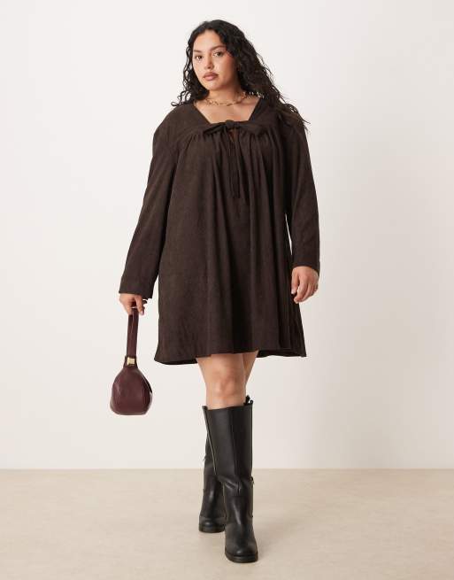ASOS DESIGN Curve cord tie front mini smock dress in plum