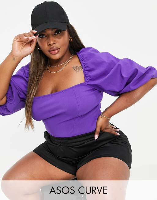 ASOS DESIGN Curve corset top with puff sleeve